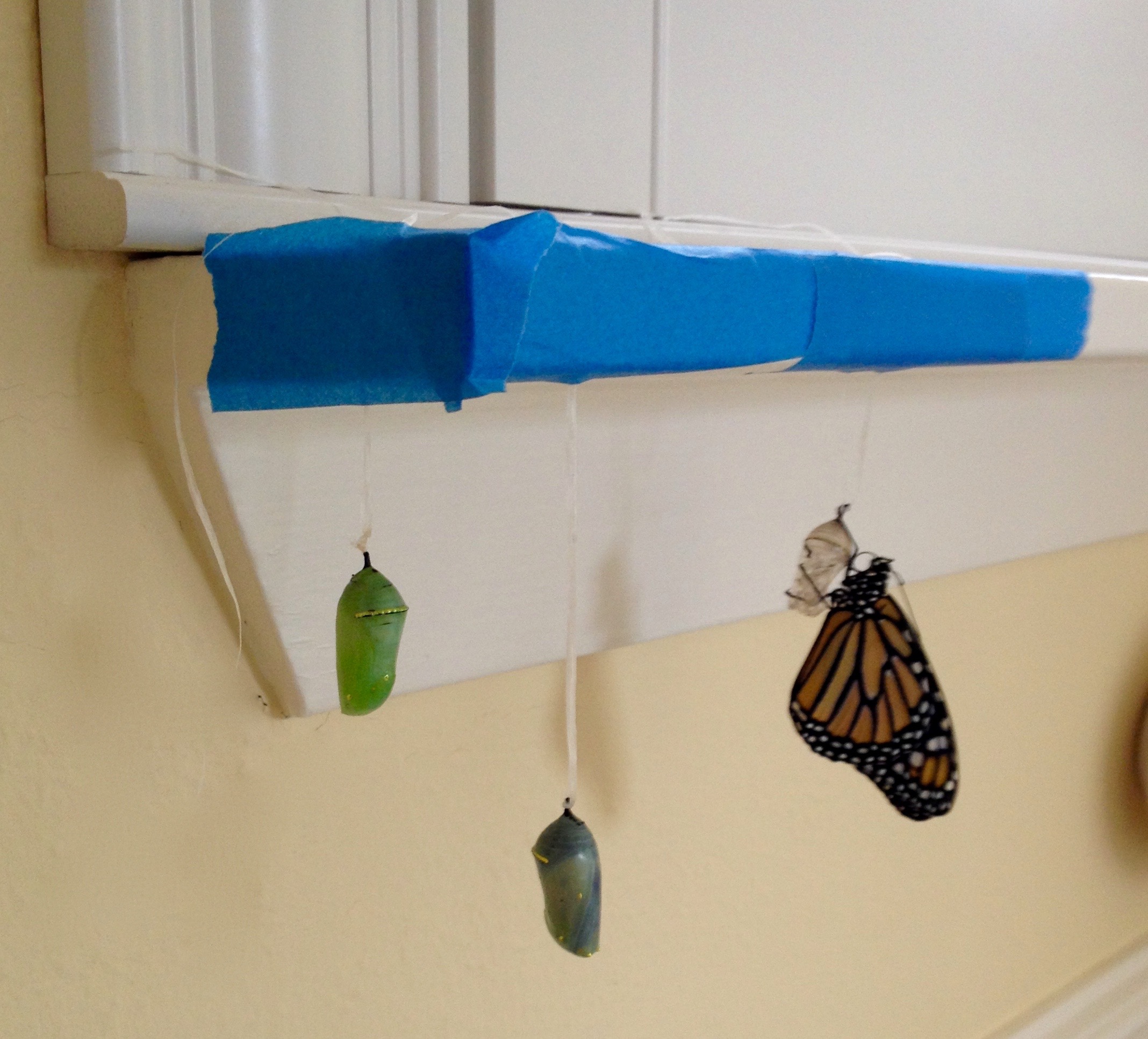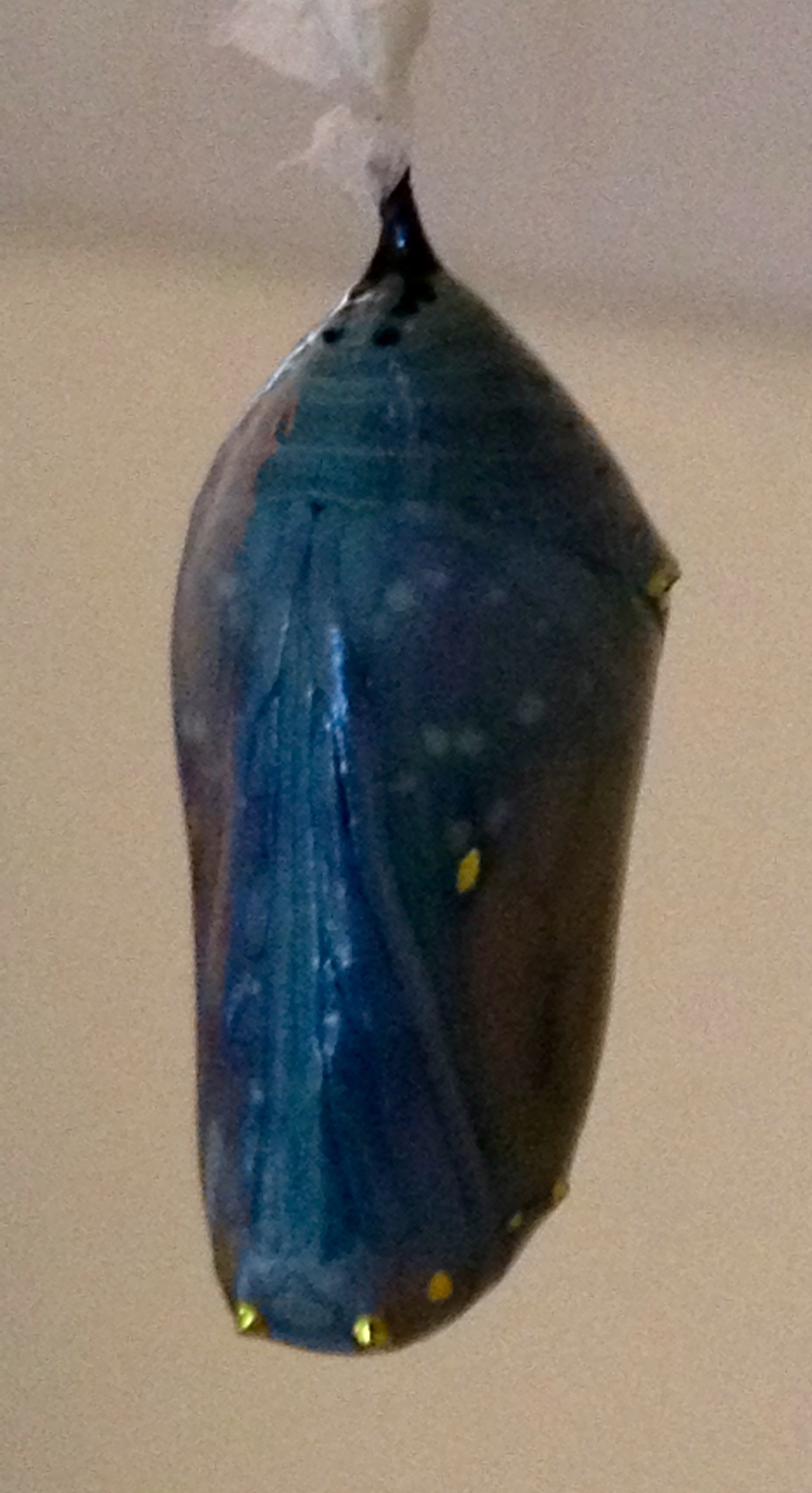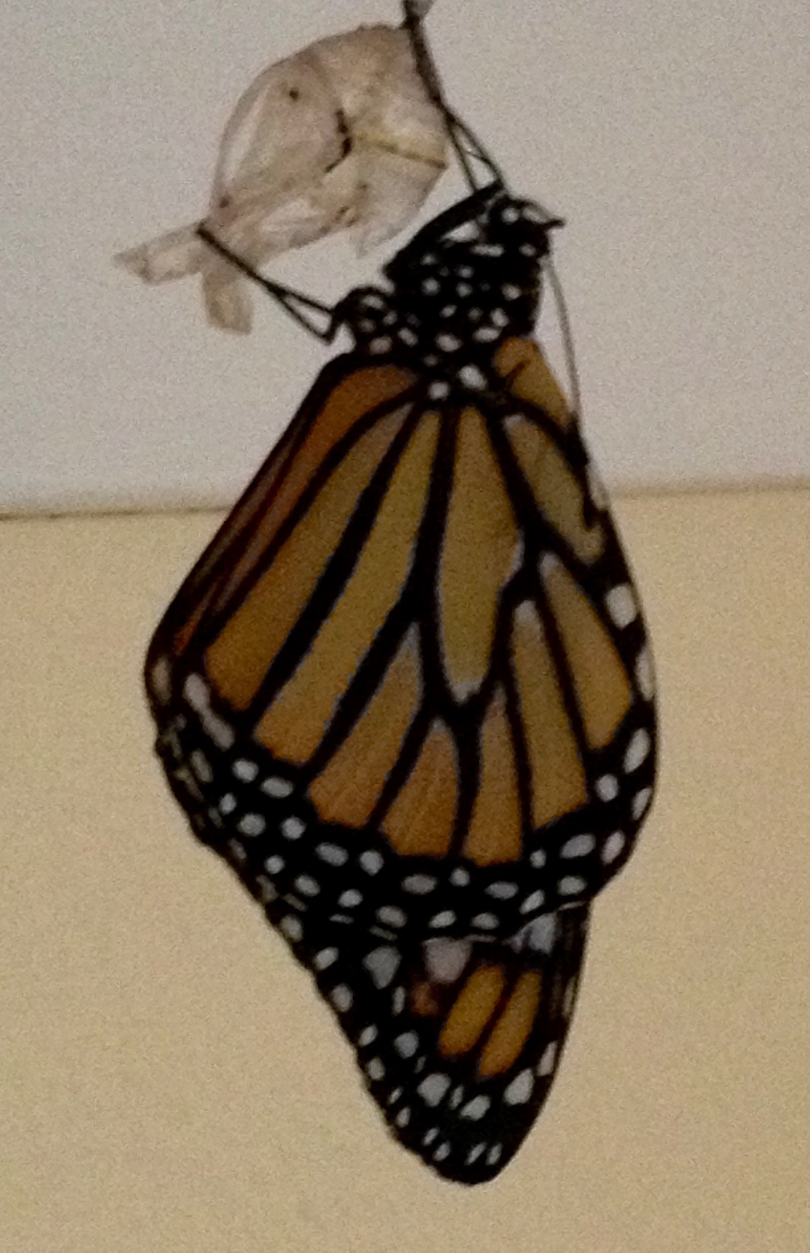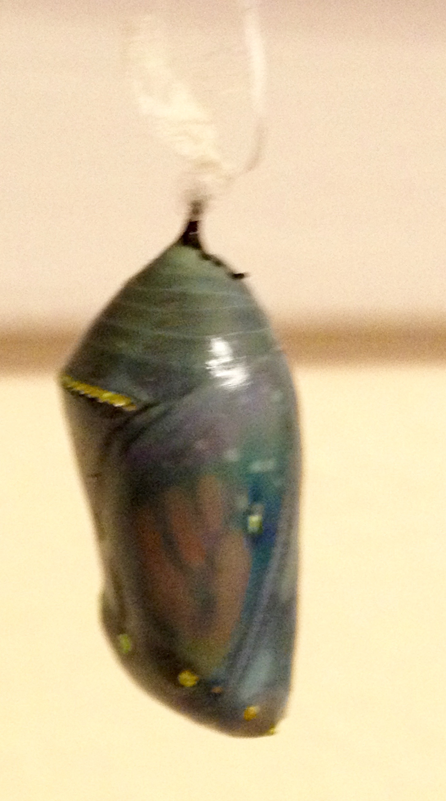 My BFF Kathleen has been nurse-maiding some monarch butterfly chrysalis eagerly awaiting their metamorphosis to butterflies. She is a very dedicated “Butterfly Mom” who went to great lengths to plant milkweed to encourage replication of the monarch butterfly’s life cycle in her backyard. A few weeks ago she was the proud “Mother” of one brand new Monarch butterfly and waiting in the nursery were perhaps four or five more. I was privileged that she shared this great moment with me and what a beautiful event it was to witness. I admire her dedication to help in the preservation of these beautiful butterflies. As the saying goes…”It takes a village” to help save a species, to make a change for the better. Kathleen took up the banner and stepped up to the plate to make a difference for these beautiful creatures. A small difference, but all the small differences can make a huge impact on the survival of a species.