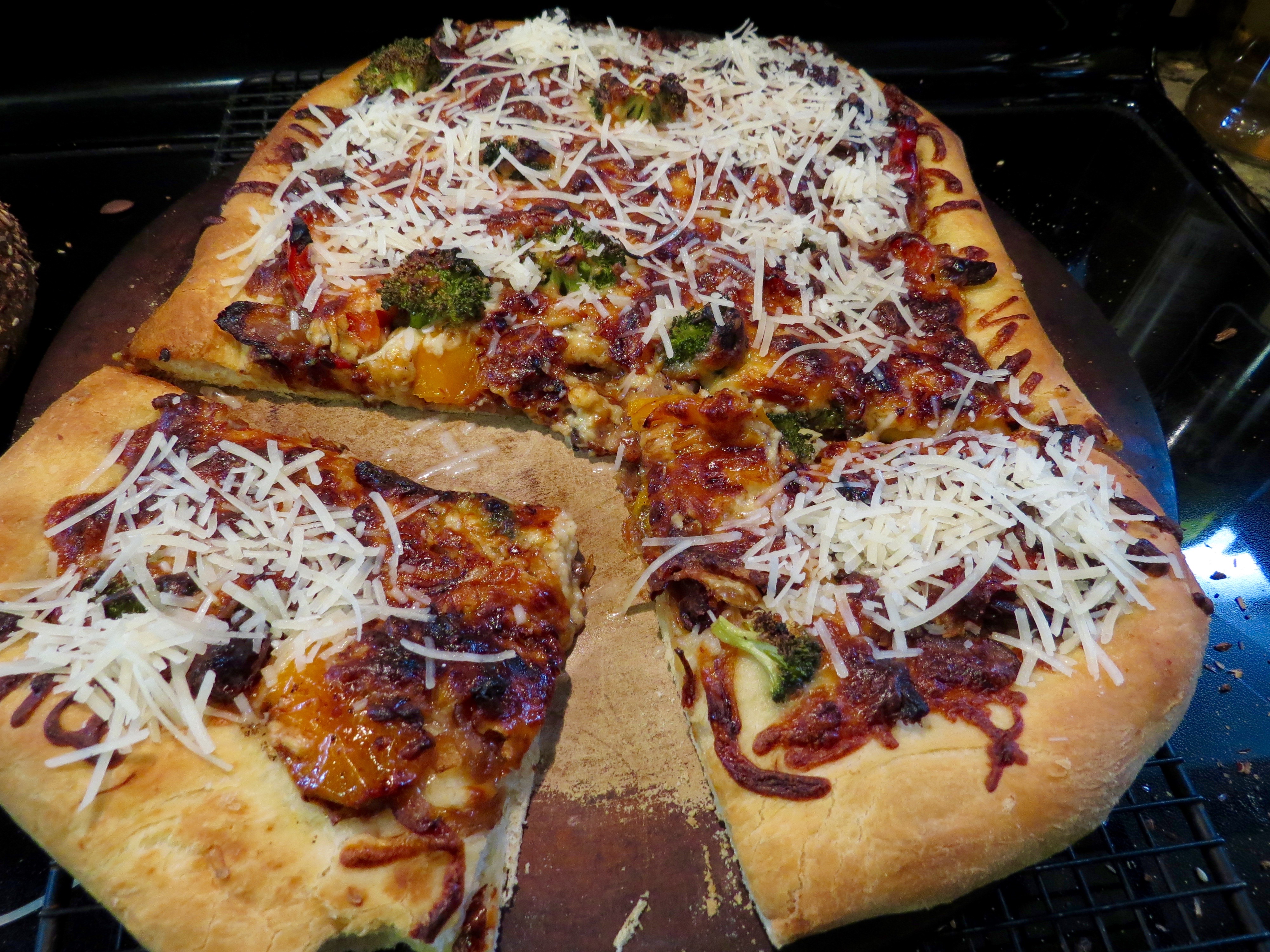 I love pizza!! I’ve lived in Austin for twelve years and I spent many years searching for a pizza to rival my favorite Houston pie purveyor… Star Pizza. Star turned out a whole wheat Vegetarian Starburst pizza second to none. Gooey cheese, caramelized onions, broccoli, mushrooms, zucchini squash, green peppers and a light splash of a tangy tomato sauce. I craved this pizza on a regular basis and went into pizza withdrawal when I moved to Austin. My BFF Kathleen regularly takes pity on me and brings me one when she comes to visit.
