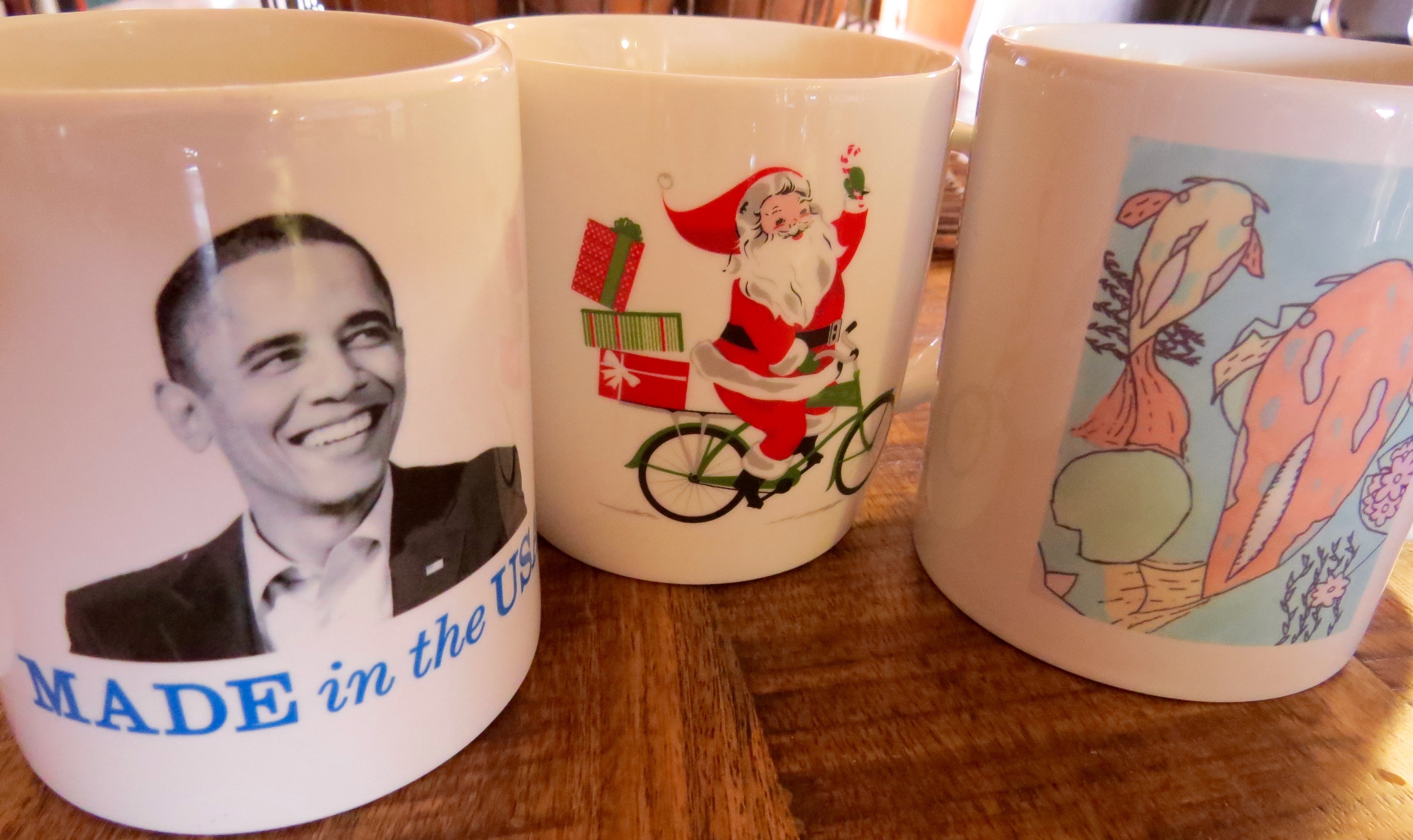 One of my sisters refuses to drink coffee from any cup that has a dark interior. A good friend prefers cups that are round and stout and her cup of joe must be incredibly hot. Another of my sisters always has a china cup for me when I visit her home. And in my own coffee cup kitchen cupboard I have an assortment of mugs and cups, each of which carries memories of places visited or adventures with friends or family. There are thick, chunky “black dog” mugs that are reminiscent of happy summers spent with my sisters at Martha’s Vineyard and Nantucket. A close friend gave me a white china cup with a plump Santa that I enjoy year round with my evening red zinger tea. And my day off or weekend favorite is a tall white Starbucks mug that holds ample amounts of brewed coffee that accompanies me to a cushion of pillows on my bed where, with newspaper in hand, I lounge through the enjoyment of early morning pleasures. Another favorite is my Obama mug reminiscent of a happier political climate. A grandson gifted me one with his incredible art work on it. The thing about coffee cups is that each time you reach into a cupboard a memory accompanies that container and for a split second the warmth inside that mug isn’t from the coffee but from the loved ones who surround us throughout our lives.