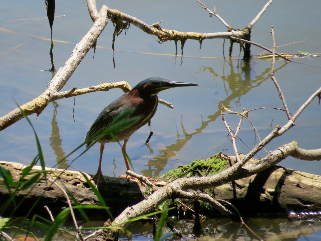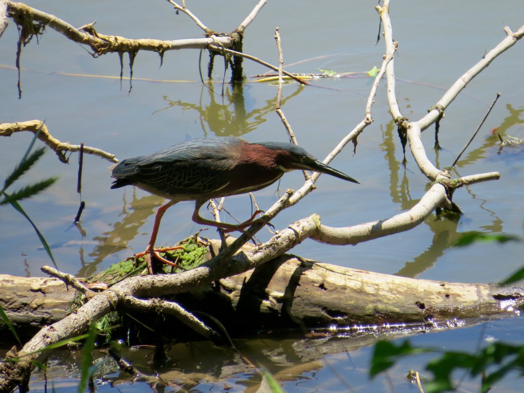 My rewards for this day were shoes that worked well and feet that didn’t hurt in the least bit by the end of my adventure. My heart rate never went above 95 so booyah…success. And just as I was leaving the boardwalk and proceeding to the I35 walkway to head home, I spied a beautiful green heron stalking his lunch.